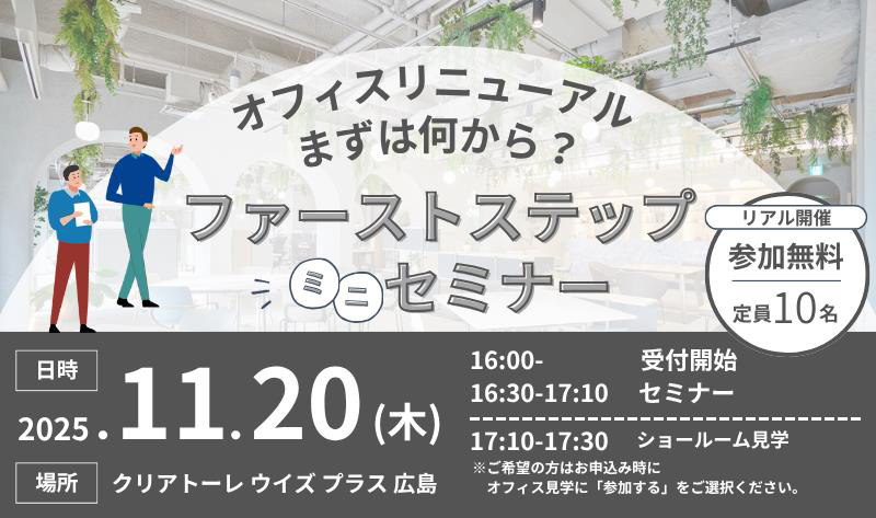 【広島】11/20 「オフィスリニューアル、まずは何から?ファーストステップミニセミナー」