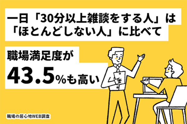 30分以上雑談している人は、そうでない人に比べて「今の職場に満足している」と答える割合が高い傾向が明らかに。