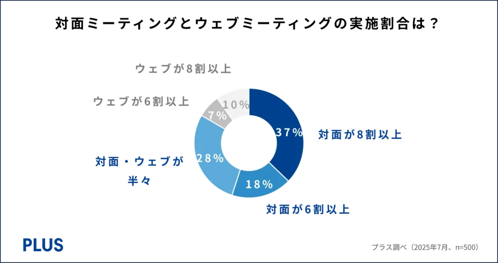 ウェブミーティングが定着しても尚、顔を合わせて行う対面ミーティングの開催割合は依然として高い傾向にあり、対面ミーティングの質を上げることは必須課題と言えます。「活発に議論したい」「温度感を共有したい」など、せっかく対面開催するからこその期待がある一方、実際には多くの人が不満を抱えているようです。