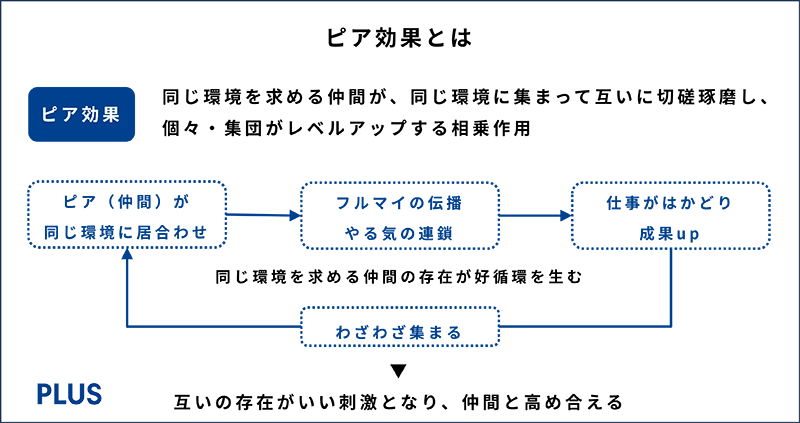 これは、受験生が家よりも自習室で勉強が捗るように、同じ目的を持つ人同士が集まることで互いに刺激し合う「ピア効果」によるものと考えられます。集中ブースには、遮断だけでなく孤立させない工夫が欠かせません。