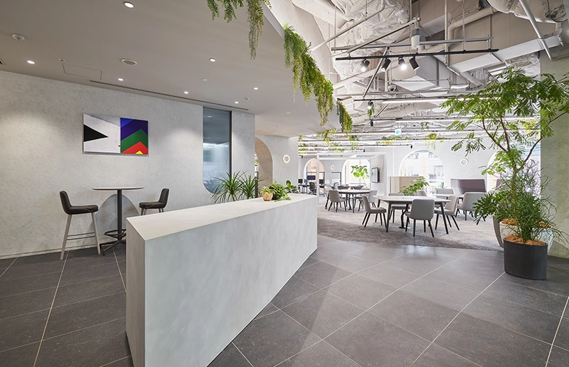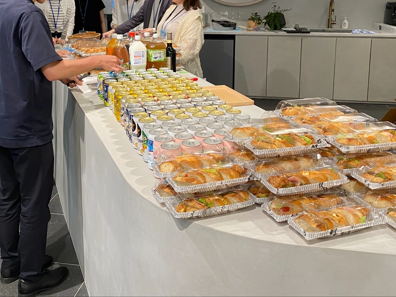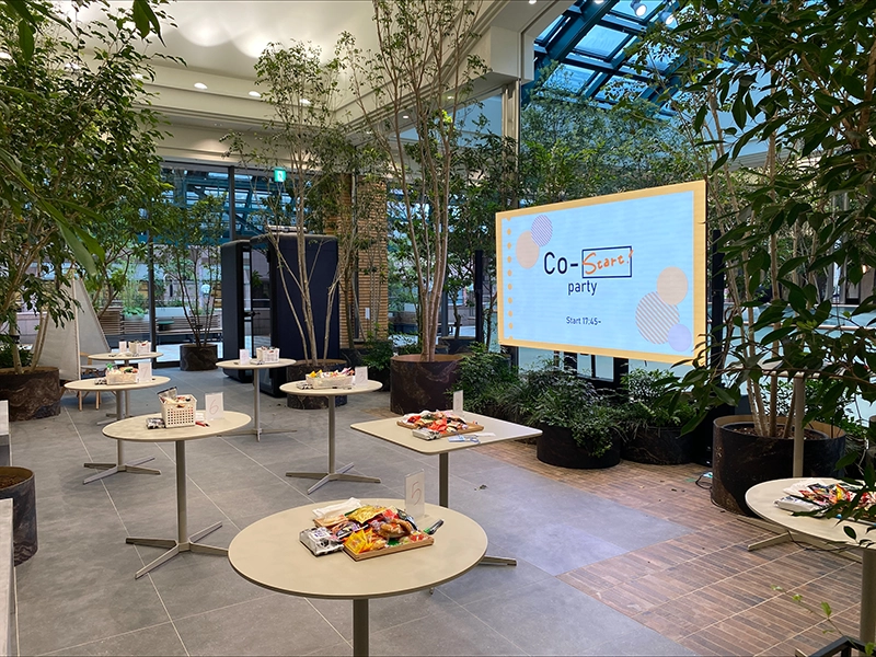 業務時間内は個人作業や軽い打合せ、ランチに使われるスペースですが、家具の配置を調整すれば数分でイベント仕様に早変わりします。オフィス内で開催することで、「仕事終わりにちょっと顔を出してみよう」という気軽さを生み、参加へのハードルを下げる効果も期待できます。